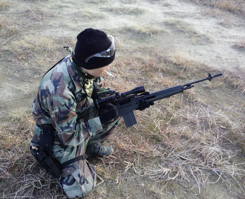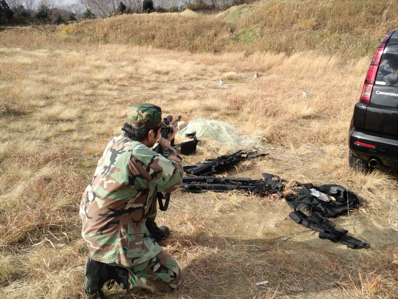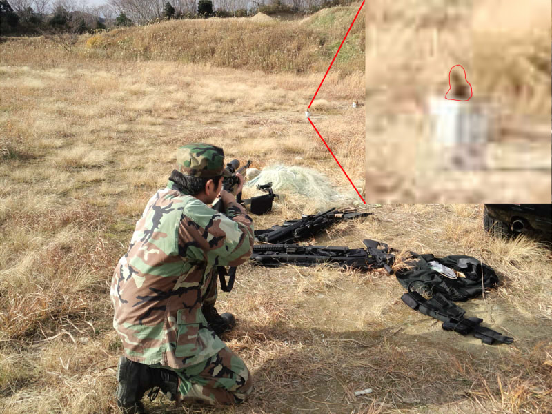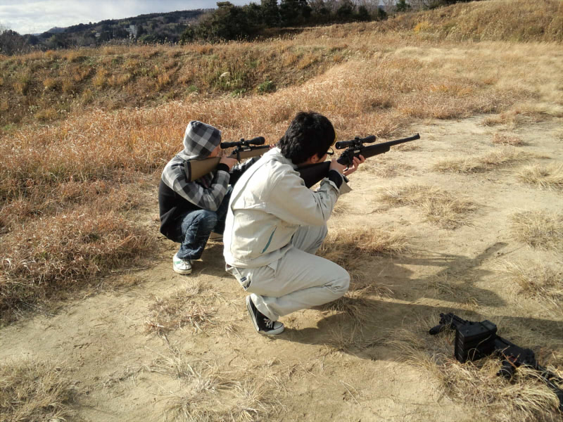 狙撃の図。ちなみに的は白い缶ではなく