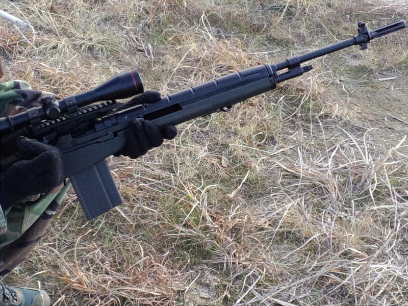 さぁM14の実射だ!と構えてみると、見かけによらず結構軽い。イメージよりは構えやすく扱いやすい銃ですね。セミで撃ってみると、そこそこの精度でした。当日は結構強い風が吹いていて、思うように飛ばないことが多々ありましたが、風がないときの精度を見るになかなかの高精度だと思います。フルも撃てますが、スコープをつけてる状況だと余り使いやすくはなかったですw弾道見て撃ったほうが早い。